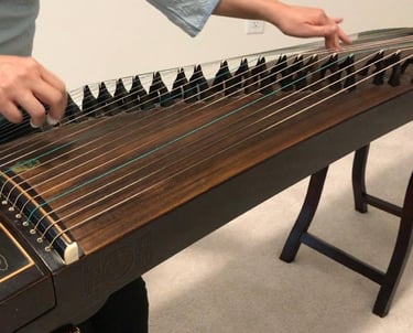 The course setting provides a more economical channel to learn the guzheng. Students are presented the material for the course and have hands-on opportunities to try out what's covered. After completing a course, students can practise the material covered at their own pace and register for the next course when they feel they are ready for the next level. They can also schedule occasional private lessons for additional personal attention to monitor progress and correction of techniques.
